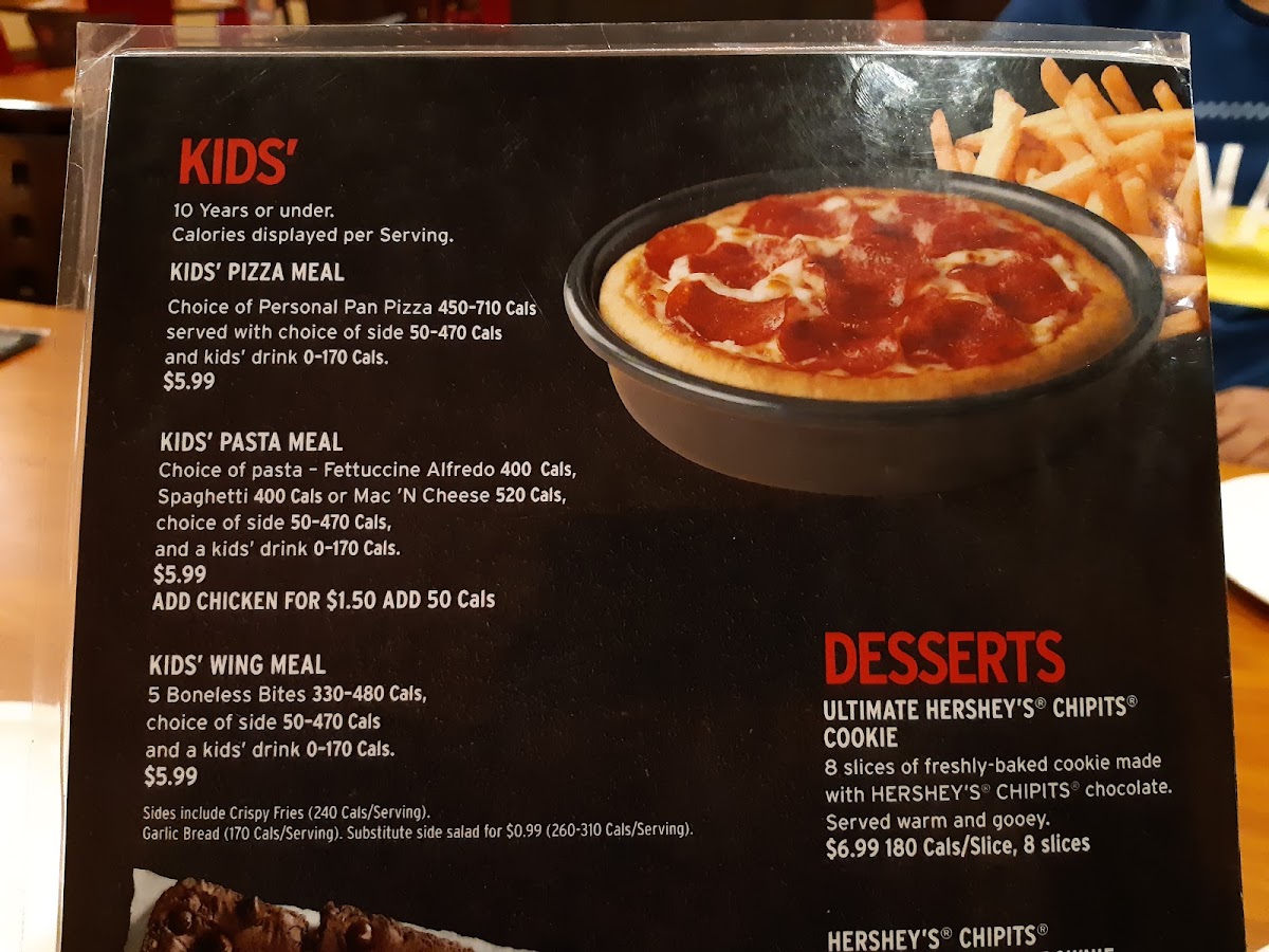 Includes 2 medium pizzas (2-Topping CYO or Recipe) regular breadsticks, two dips, 8 boneless bites & an ultimate Hershey's Chipits Cookie.
